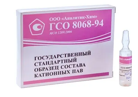 Стандарт для приготовления раствора КПАВ концентрации 0.003 моль/л. Обеспечивает требования ГОСТ 30828-2002 и ТУ 10-04-16-161-89 "Шампуни на основе синтетических ПАВ" и другой документации на испытания продукции.
