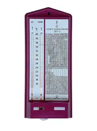 Гигрометр психрометрический предназначен для измерения относительной влажности и температуры воздуха в помещениях с температурой внутри помещения от 15 до 40 ºC.