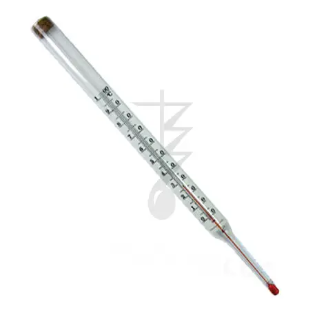 Стеклянный жидкостный термометр с вложенной внутрь оболочки шкальной пластиной. Термометр неполного погружения. При измерении температуры глубина погружения равна нижней части термометра. Термометры ТТЖ У - с углом нижней части 90 °С.