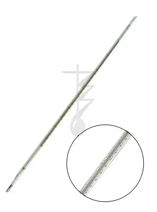 Стеклянный термометр с вложенной шкальной пластиной. В верхней части термометра для его удержания имеется шарик диаметром 6 мм.