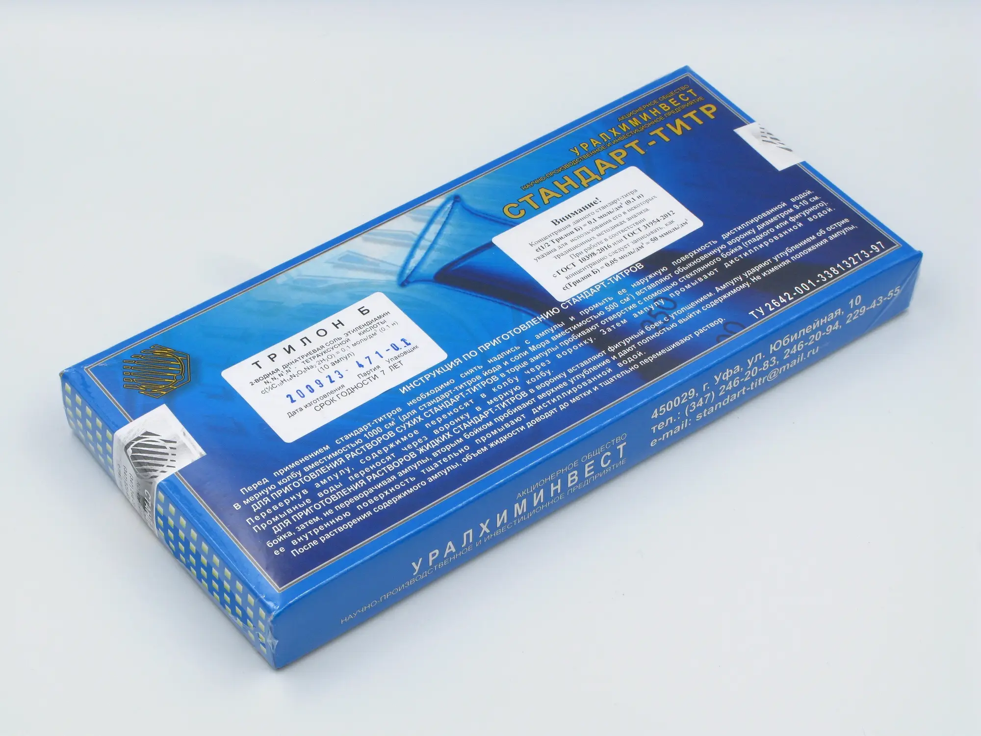 Стандарт-титры представляют собой ампулы с точными навесками химических реактивов, необходимых для приготовления титрованных (стандартных) растворов с заданным объемом и молярной концентрацией эквивалента 0,100 (или 0,05)±0,001 моль/л