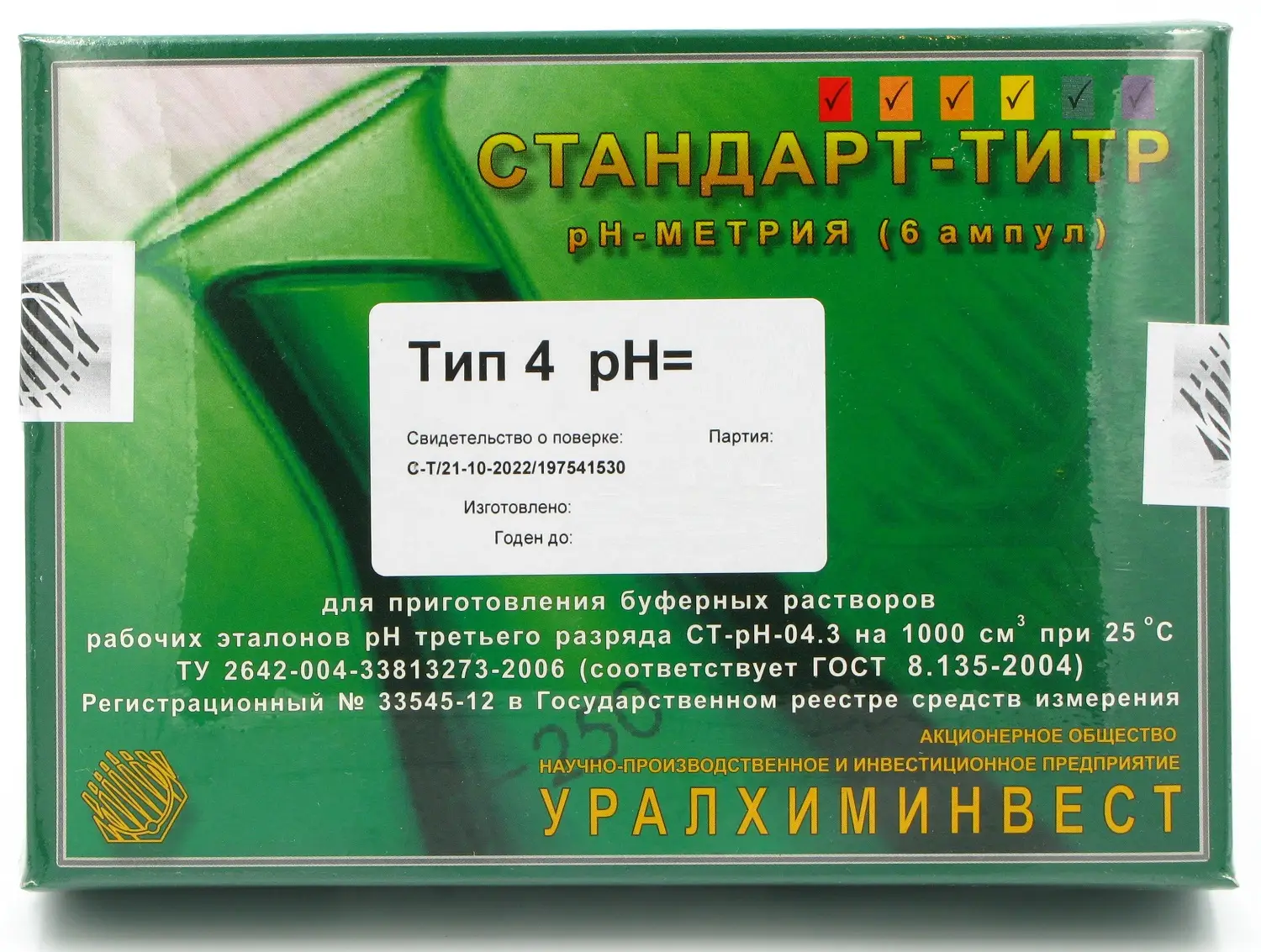 Стандарт-титр pH-метрии 3 разряда, pH=3,56 ГОСТ 8.135-2004 (упак. 6 шт) купить с доставкой по России | Химмедсервис